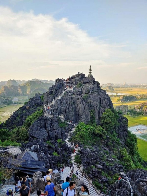 Once at the top, you’ll be rewarded with a breathtaking panoramic view of Tam Coc, Trang An, and the surrounding countryside.
