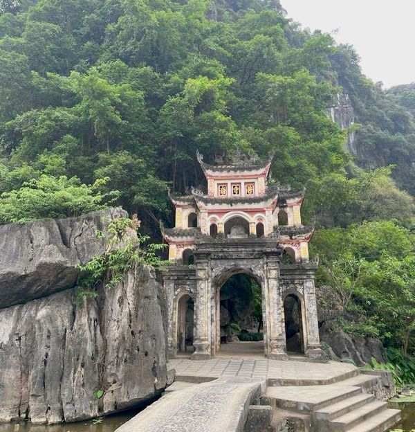 The lower pavilion, made entirely of stone, is accessible via a picturesque bridge over a lotus lake. The middle pavilion, built into the rock, impresses with its unique architecture and sculptures depicting the four sacred animals of Buddhism. Finally, the upper pavilion, perched at the top of the mountain, offers a breathtaking panoramic view of the Ninh Binh landscapes.