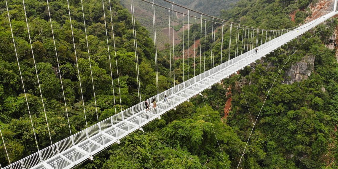 Located between two mountains in the province of Son La in Vietnam, Bach Long bridge, inaugurated at the end of April 2022, breaks record for world’s longest glass suspension bridge.